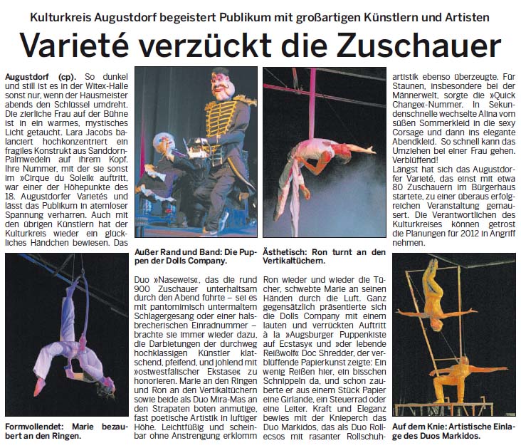 Lex & Alina: „Es ist unglaublich, was dieser Kulturkreis jährlich auf die Beine stellt. Das Augustdorfer Variete kann sich mit längsten Varieteshows Frankreichs mühelos messen. Es ist Einzigartig in Deutschland.“