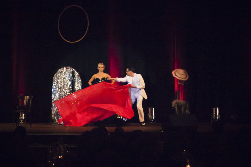 Lex and Alina, originally from Germany, are masters of the quick-change act. Their wardrobes change before your eyes in an instant, than change again…. Magic is typically ‚Now you see it, now you don’t‘. But with Lex and Alina it is: ‚Now you see it, now you see something different‘. Their act, billed as „The Quick Change Show: High Speed Haute Couture Entertainment“ is beautifully choreographed and visually stunning…